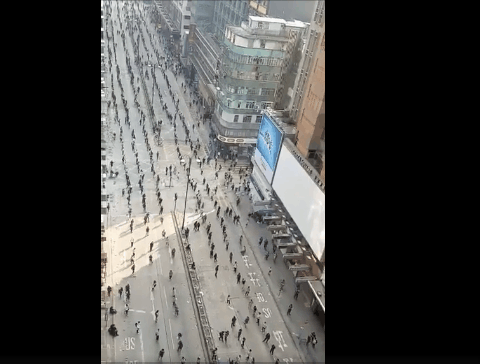 我们一直认为暴徒模样是蒙面黑衣,可人链中的这些人都是普通装束,可见暴徒的数量不仅是我们见到的参加打砸烧的黑衣人,还有不知多少在人群中的“普通人”,暴徒的人数多到无法估量。